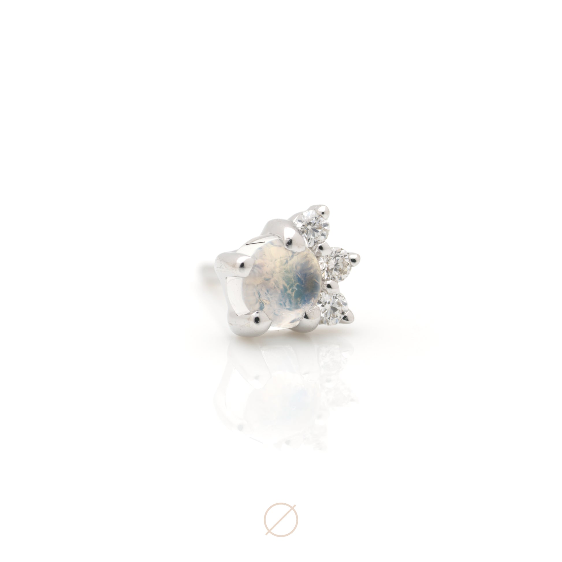 Gemstone: 3 diamonds, approximately 0.01 ctw + 1 moonstone, approximately 0.05 ctw