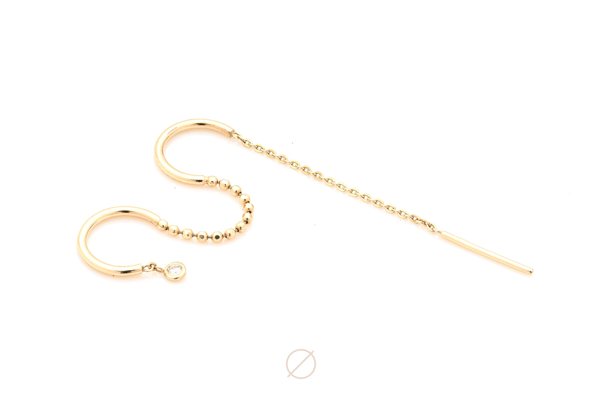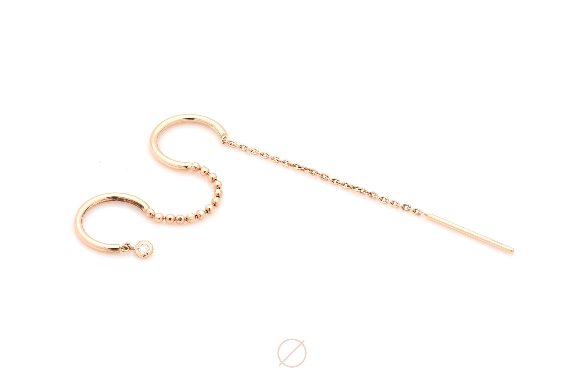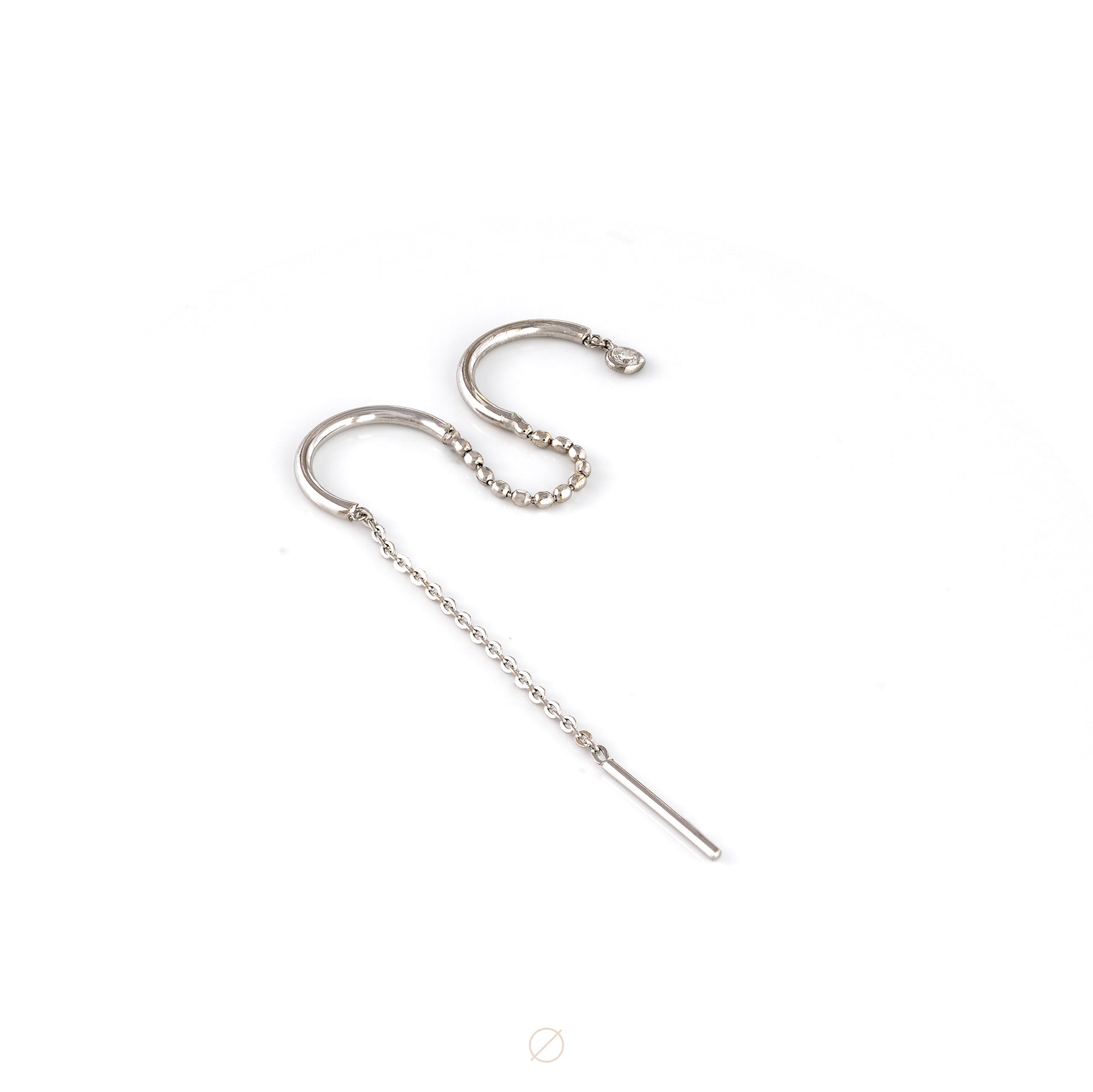 Enhance your ear styling with this elegant threader piece, delicately weaving through two adjacent piercings, showcasing a dainty genuine diamond drip